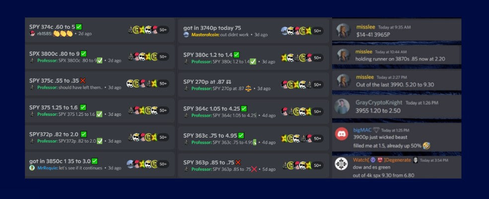 We offer these services in a few different monthly subscription packages. But if you want to give it a try before committing, you can join our Discord server for free and test a Free version of our system EVERY THURSDAY!! You can trade with our Expert Traders in our Live Trading Voice Chat. We are on the mic all day everyday calling out every turn in the market.