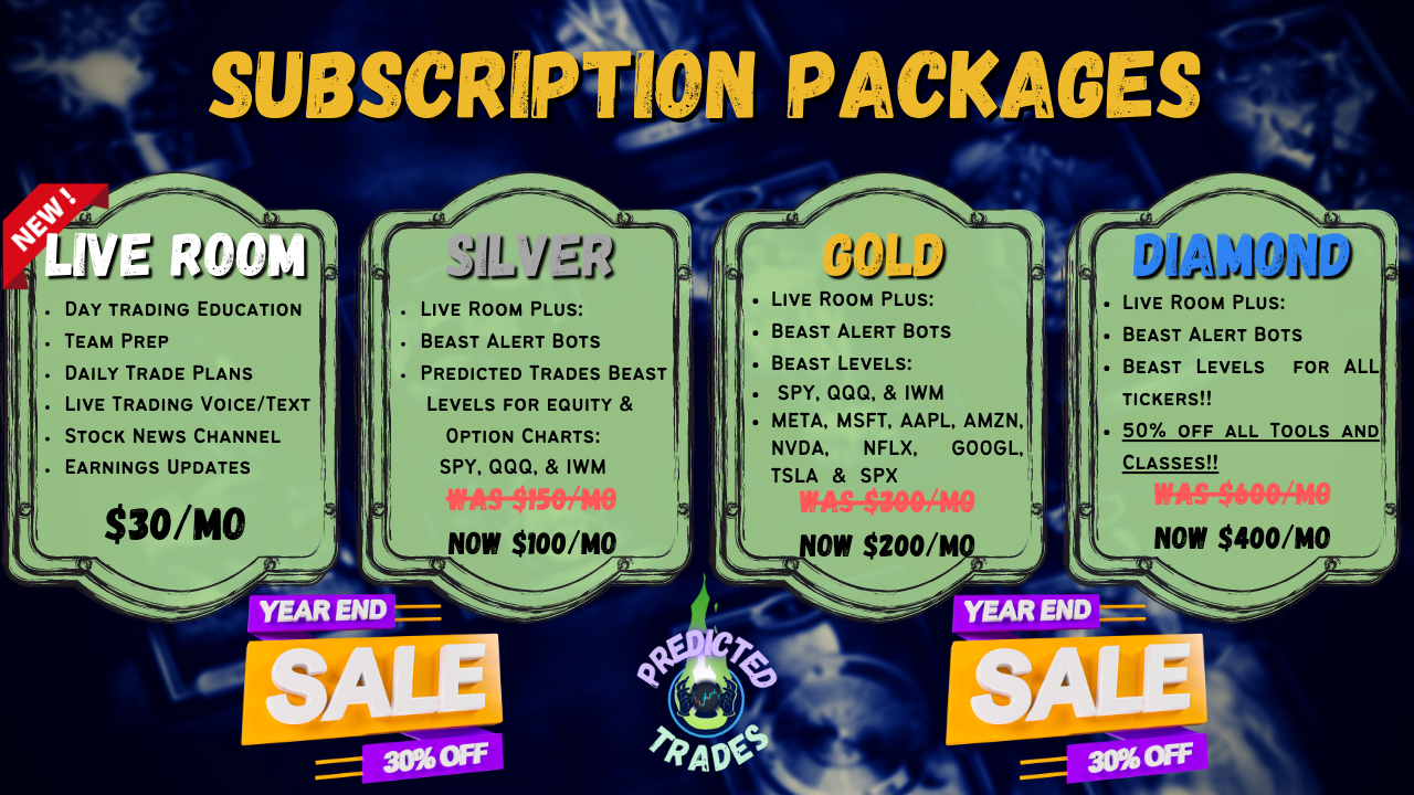 This is a great place to start if you are new to trading, new to options, or want to learn more about our system before you get our Predicted Trades Beast Levels in Silver, Gold, or Diamond Subscriptions.